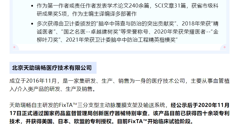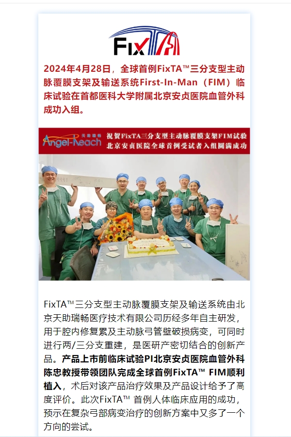 MA里程碑 全球首例北京天助瑞暢FixTA?三分支型主動脈覆膜支架及輸送系統(tǒng)FIM臨床試驗成功入組編者薦語: