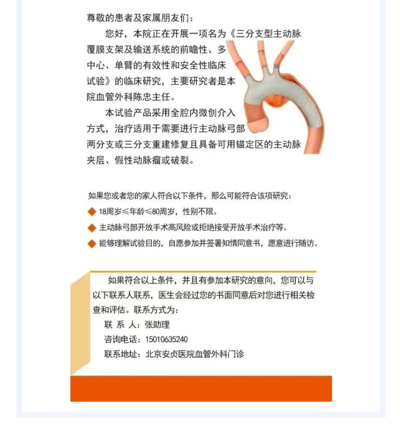 近期,由北京天助瑞暢醫(yī)療自主研發(fā)且具有完全自主知識產(chǎn)權(quán)的三分支型主動脈覆膜支架及輸送系統(tǒng)FIM臨床試驗,由首都醫(yī)科大學附屬北京安貞醫(yī)院成功完成全球首例受試者入組,奧泰康負責臨床試驗服務。