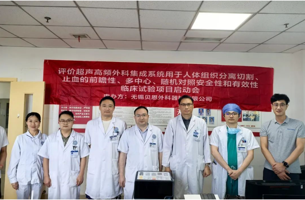 臨床里程碑 7月11日,貝恩外科超聲高頻外科集成系統臨床試驗啟動會在核工業四一六醫院(成都醫學院第二附屬醫院)順利召開7月11日上午,貝恩外科超聲高頻外科集成系統用于人體組織分離切割、止血的前瞻性、多中心、隨機對照安全性和有效性臨床試驗啟動會在核工業四一六醫院(成都醫學院第二附屬醫院)順利召開。
