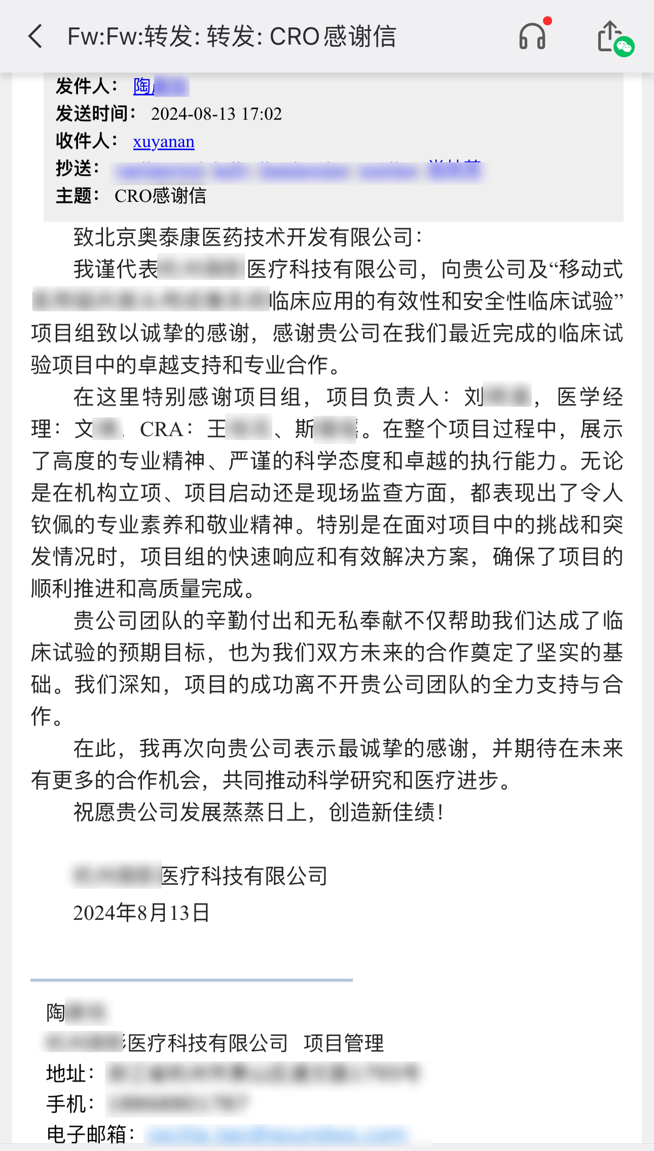 感恩有你,未來可期。在感恩節來臨之際,我們對合作伙伴的理解和支持表示感激,也對臨床項目組成員表示感恩,是大家每個人的共同努力使得項目得以順利開展,愿我們的合作之旅,如同星辰大海,浩瀚無垠,充滿無限可能與希望。讓我們帶著這份感恩的心,繼續前行,共創更加輝煌的明天!