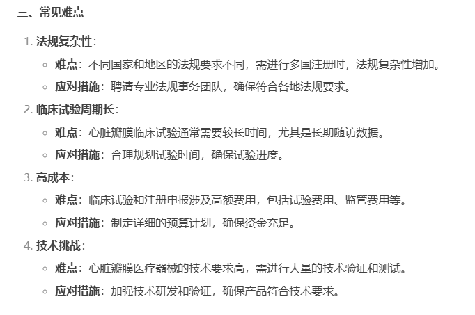然而,每一項創新技術的臨床應用,都離不開嚴謹的臨床試驗驗證。心臟瓣膜醫療器械的臨床試驗和注冊申報是一個復雜且嚴格的過程,其中涉及的多個關鍵環節和潛在難點,關于這些,看看當下最熱門 AI工具deepseek怎么說吧~