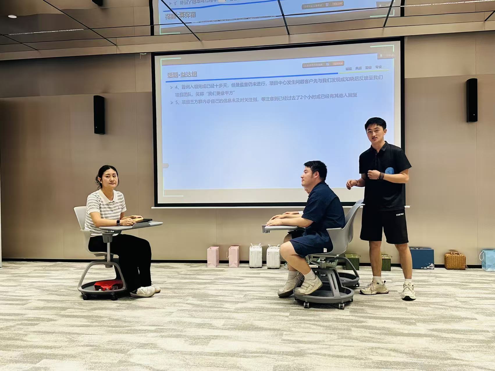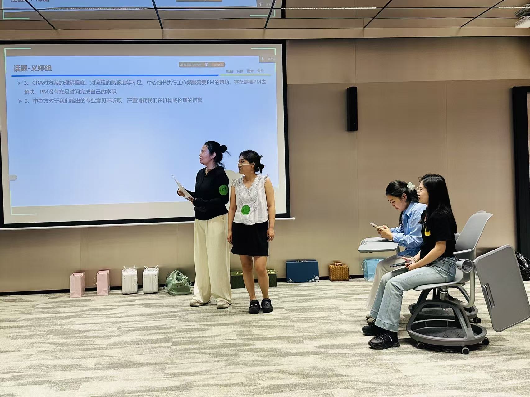 有效的溝通是團隊協作的基石。本次培訓引入了“非暴力溝通”理念,通過情景模擬與案例分析,幫助學員掌握傾聽、表達與反饋的技巧,減少人際沖突,提升團隊凝聚力。通過不同情節的生動演繹,團隊成員詮釋出日常工作中的各種棘手問矛盾,許多學員表示,這一環節讓他們重新審視了溝通方式,學會了如何以更平和、高效的方式解決工作中的矛盾。這不僅是一種技巧,更是一種修行,它能幫助我們化解與研究者、受試者或團隊成員間的潛在沖突,營造和諧、高效的工作氛圍。