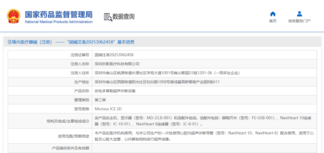 近日,歡影醫療自主研發的“彩色多普勒超聲診斷設備”已正式獲得國家藥品監督管理局批準(注冊證號:國械注準20253062458)。該設備與此前獲批的“一次性使用心腔內超聲診斷導管”共同構成完整的超高端心腔內超聲成像系統,標志著全球首款80陣元大孔徑心腔內超聲高端成像系統實現了從關鍵部件到整機系統的自主研發與生產。